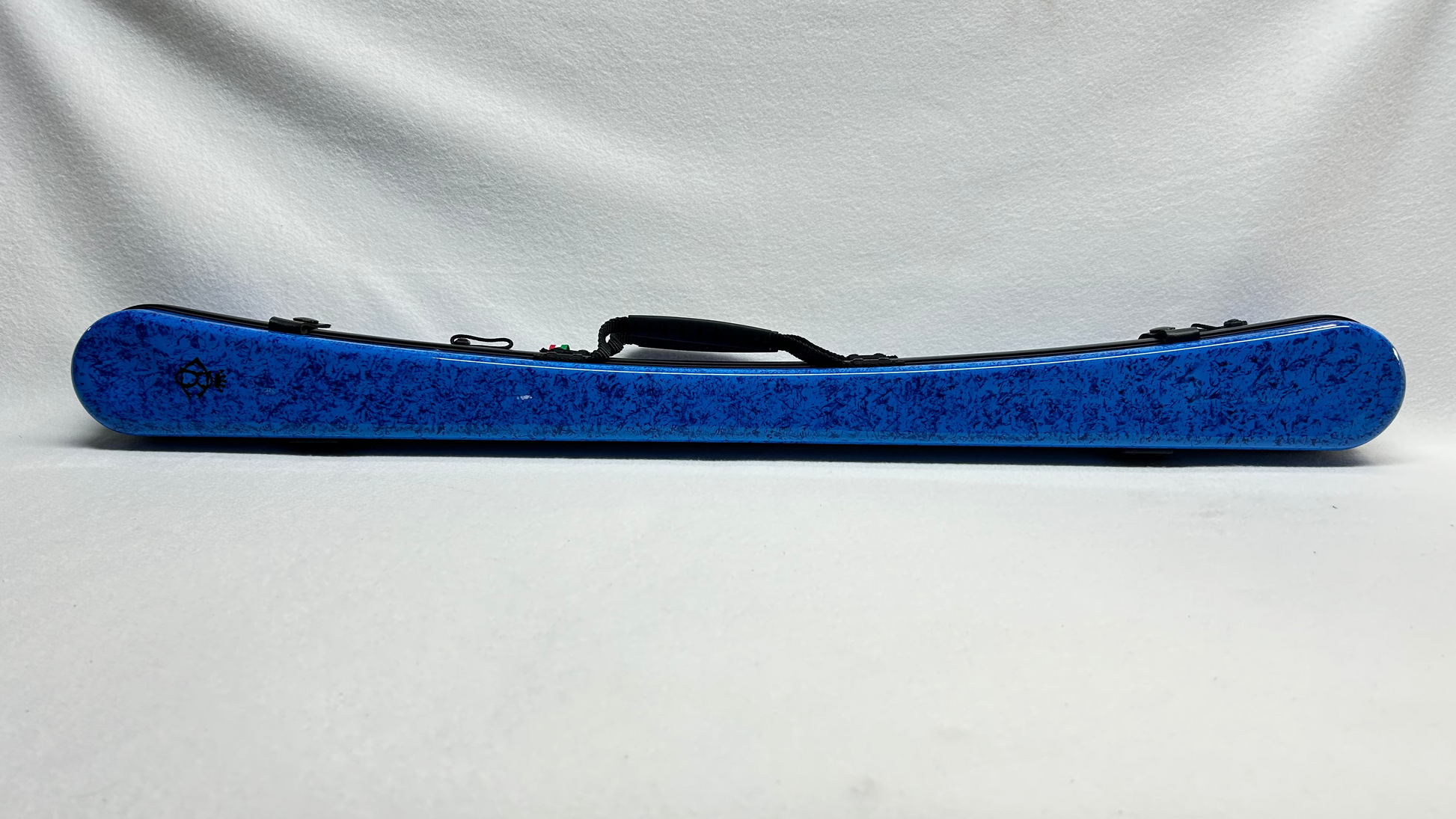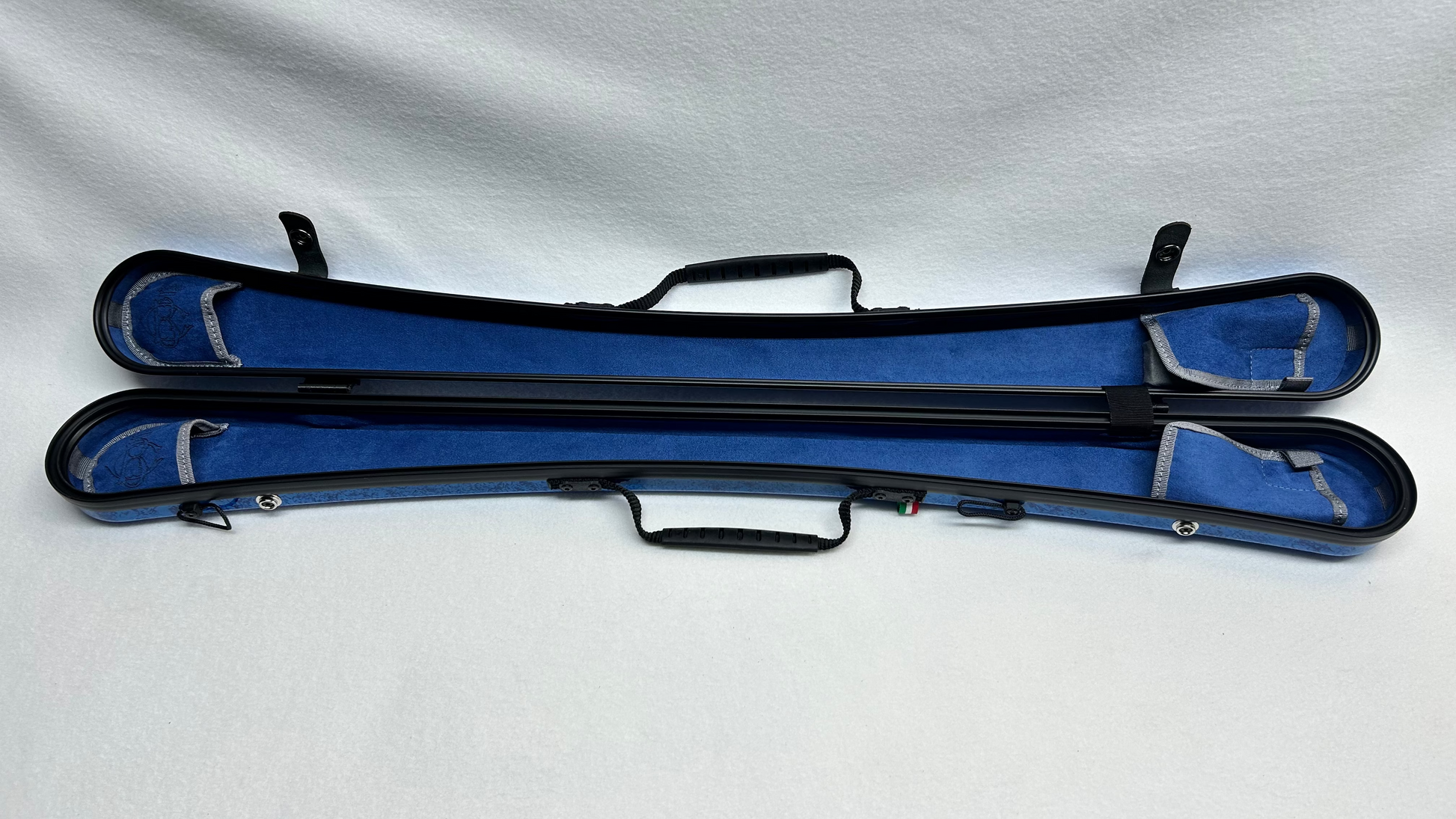 Custodia per arco da basso francese, per due archi, colore marmo RAL 5015 + Mercedes 896, finitura lucida, interno color blu.