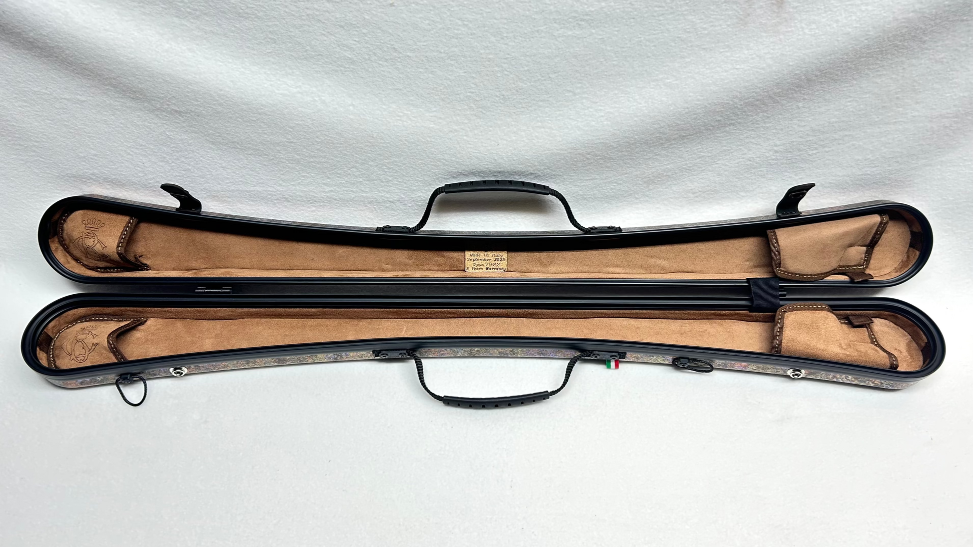 Custodia per arco da basso francese, per due archi, colore marmo Mix Colori, finitura opaca, interno color castagno