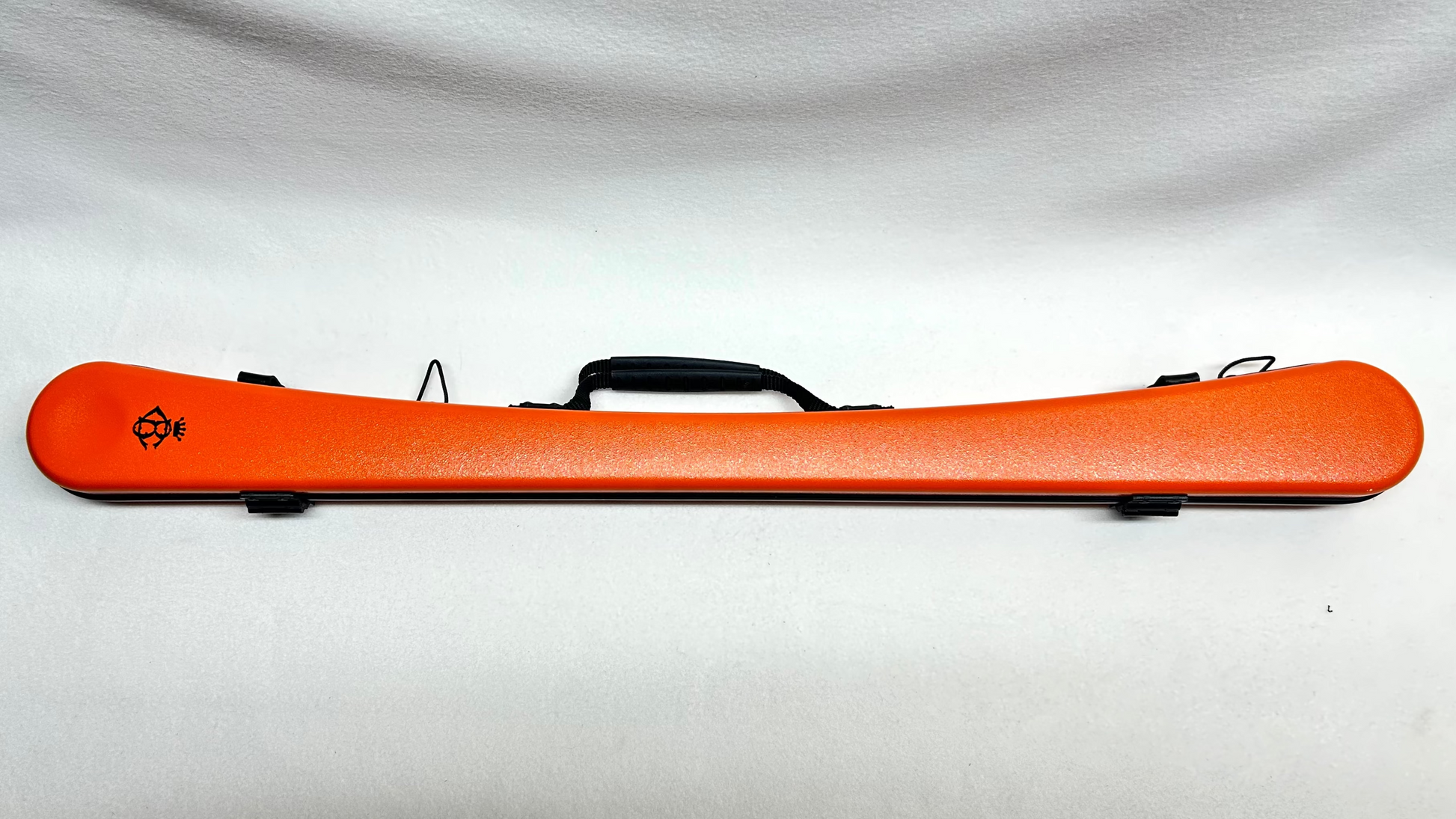 Custodia per arco da basso francese, per due archi, colorata, finitura rugiada, interno color castagno.