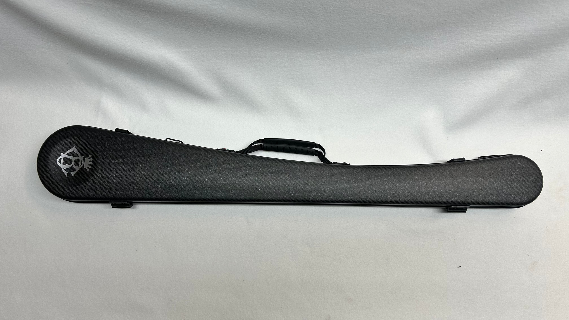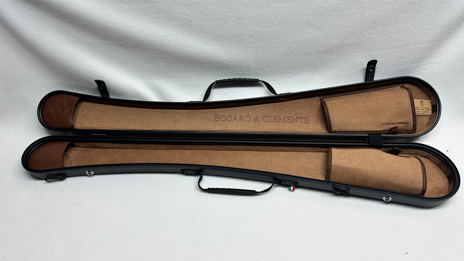 Custodia per arco da basso tedesco, per due archi, carbonio a vista, finitura rugiada, interno color castagno.