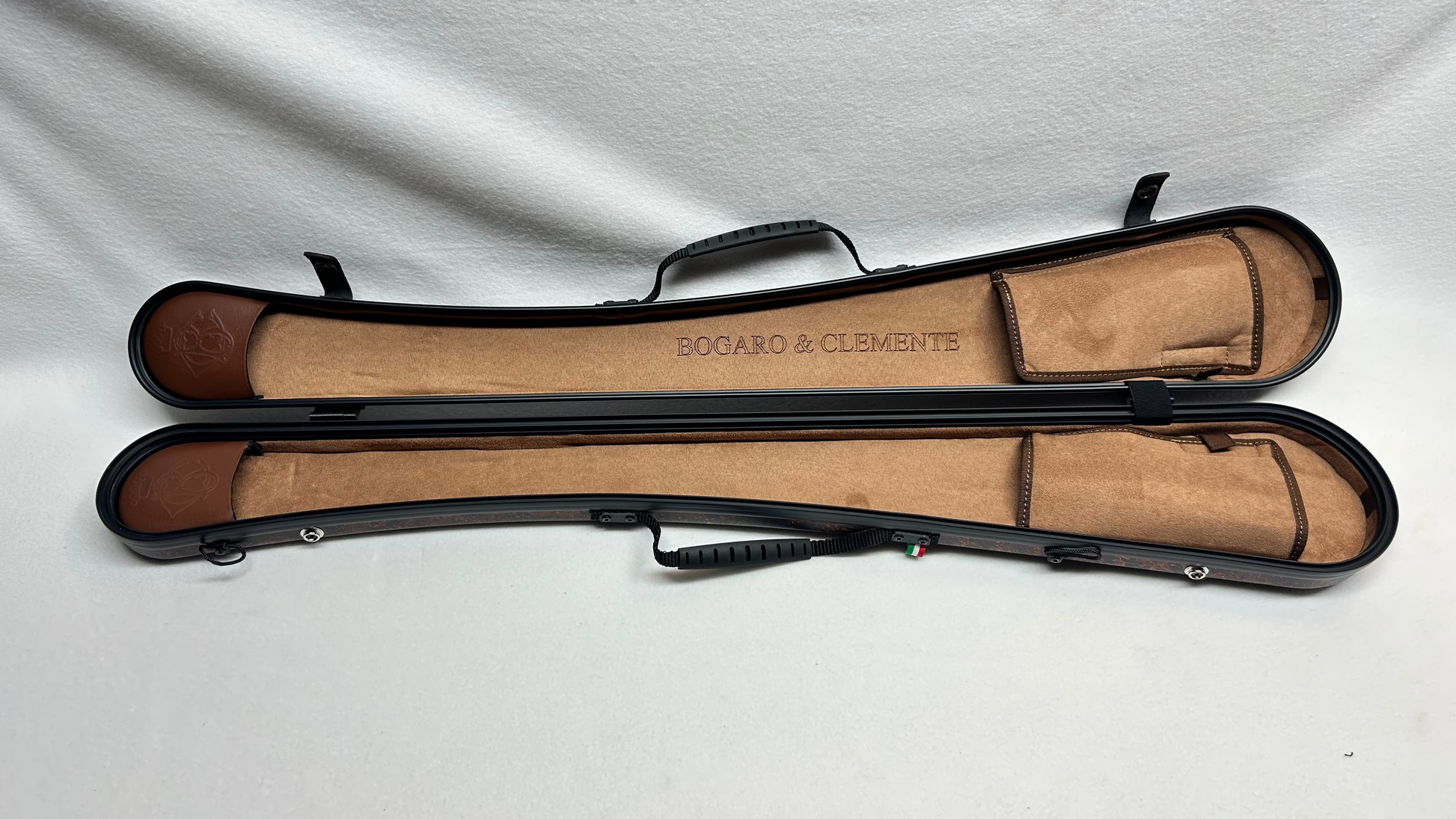 Custodia per arco da basso tedesco, per due archi, marmo MM 9214, finitura rugiada, interno color castagno.