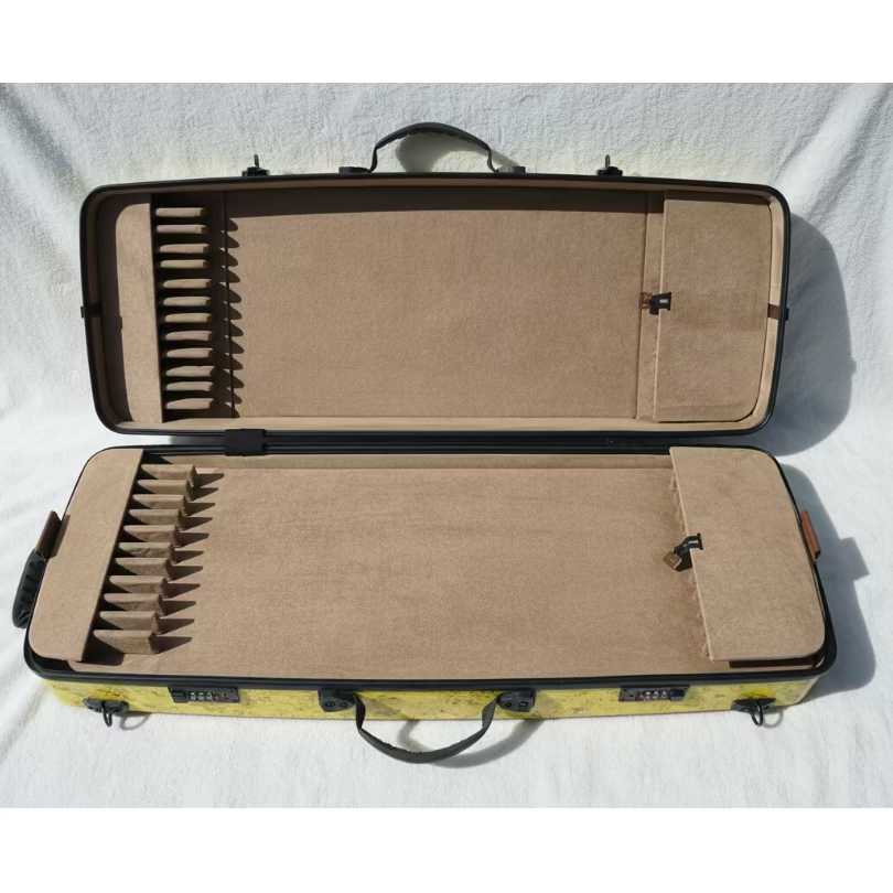 La custodia Frank è progettata per trasportare e proteggere fino a 38 archi, offrendo resistenza, organizzazione ottimale e protezione avanzata. Realizzata in carbonio con rinforzi locali e strutturali in fibra di carbonio, assicura leggerezza e durabilità.